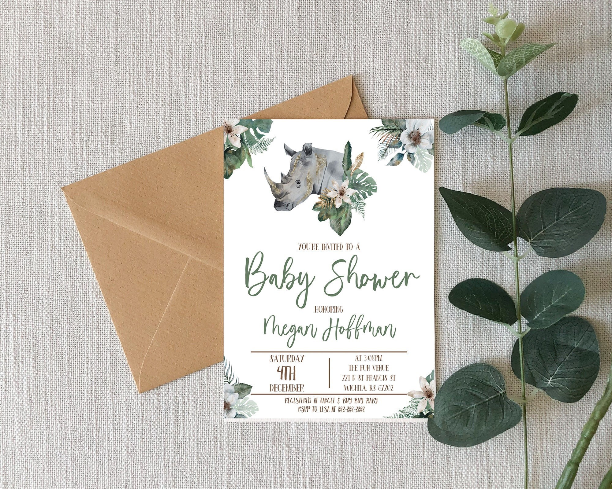 Editable Rhino Themed Baby Shower Invitation Safari Zoo Etsy